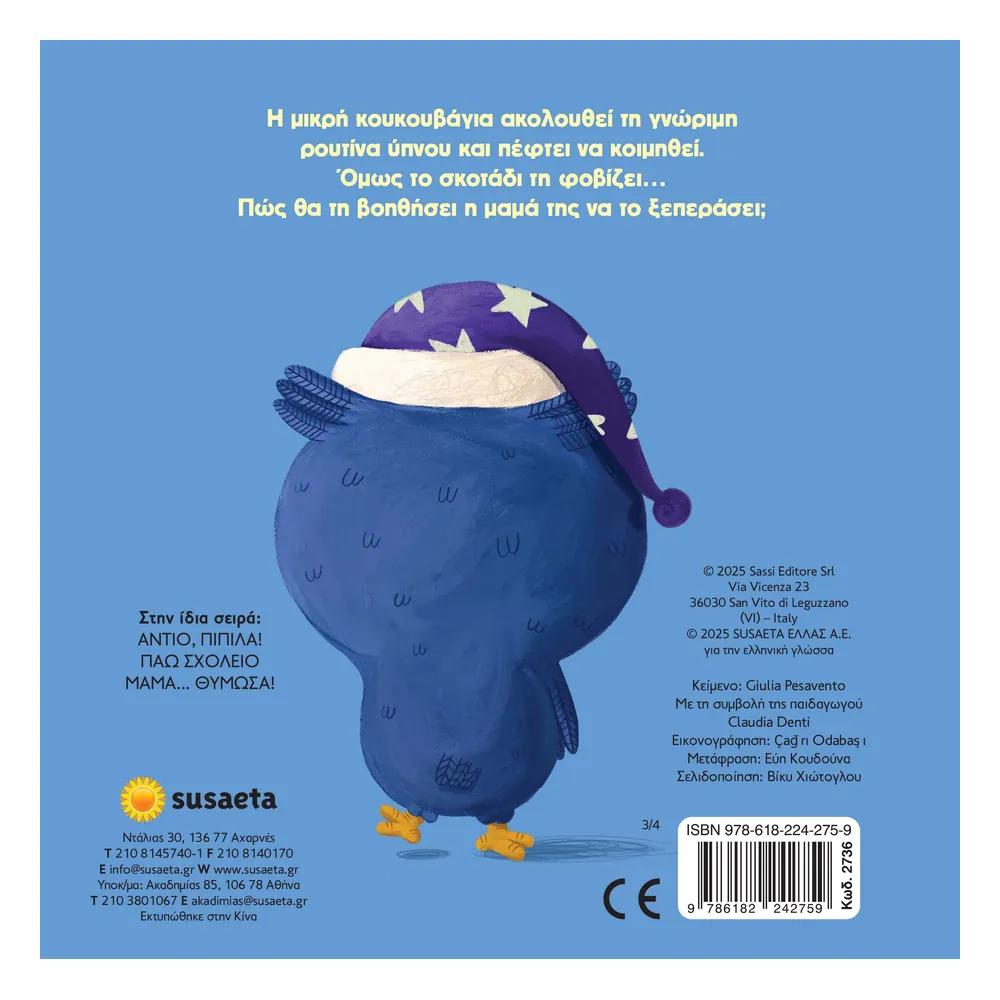 Η μικρή κουκουβάγια ακολουθεί τη γνώριμη ρουτίνα ύπνου και πέφτει να κοιμηθεί. Όμως το σκοτάδι τη φοβίζει… Πώς θα τη βοηθήσει η μαμά της να το ξεπεράσει;