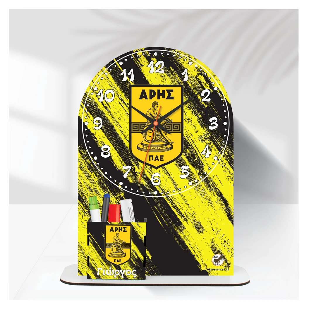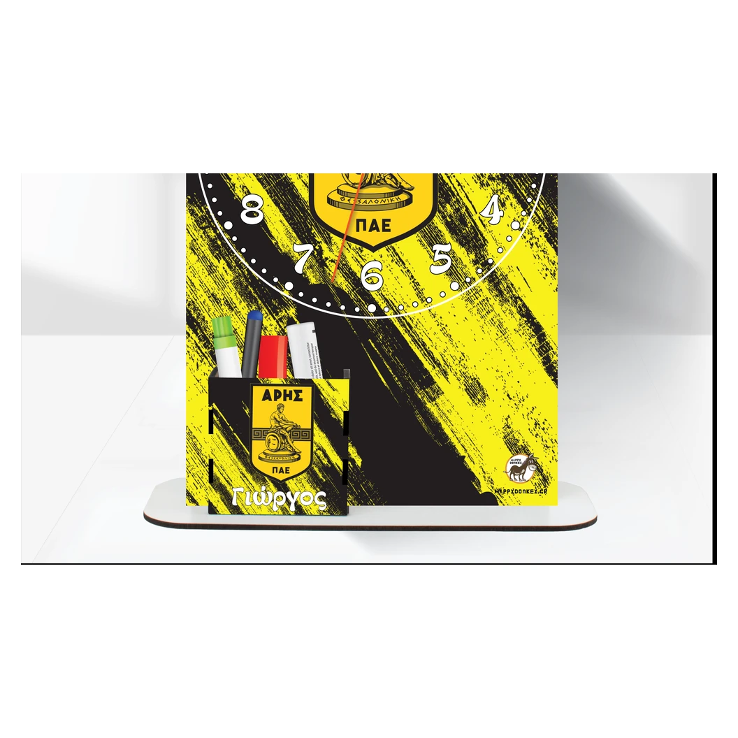 Happy Donkey Ρολόι 'Επιτραπέζιο ΑΡΗΣ με Όνομα & Μολυβοθήκη'