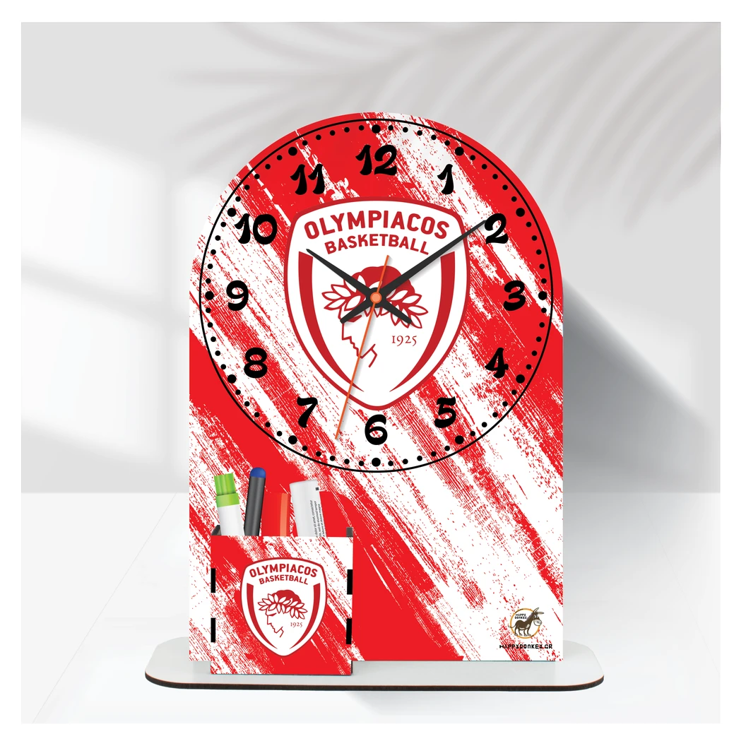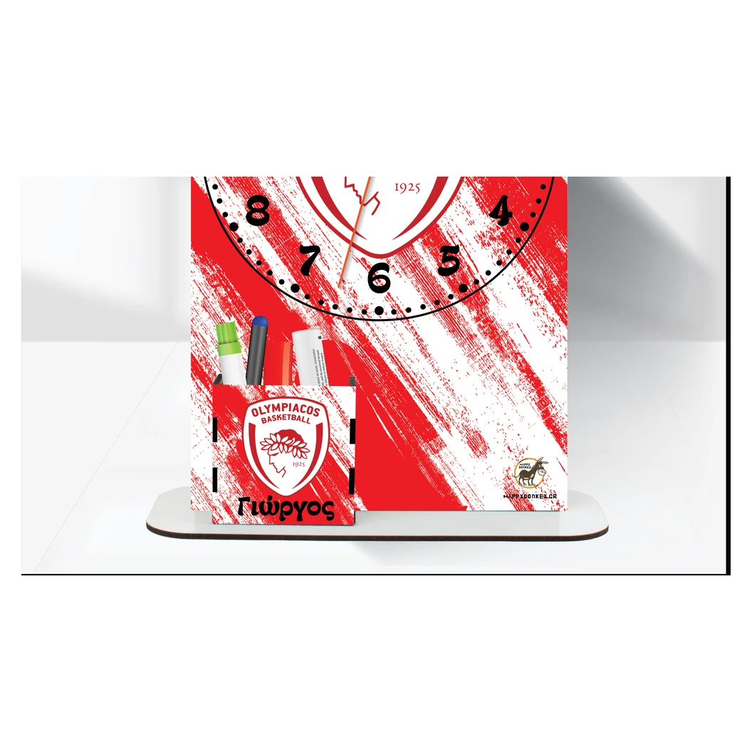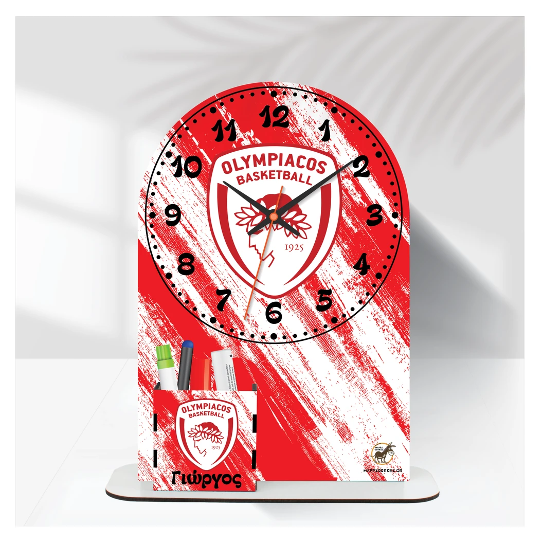 Happy Donkey Ρολόι Επιτραπέζιο ‘Ολυμπιακός Basket με Όνομα & Μολυβοθήκη’