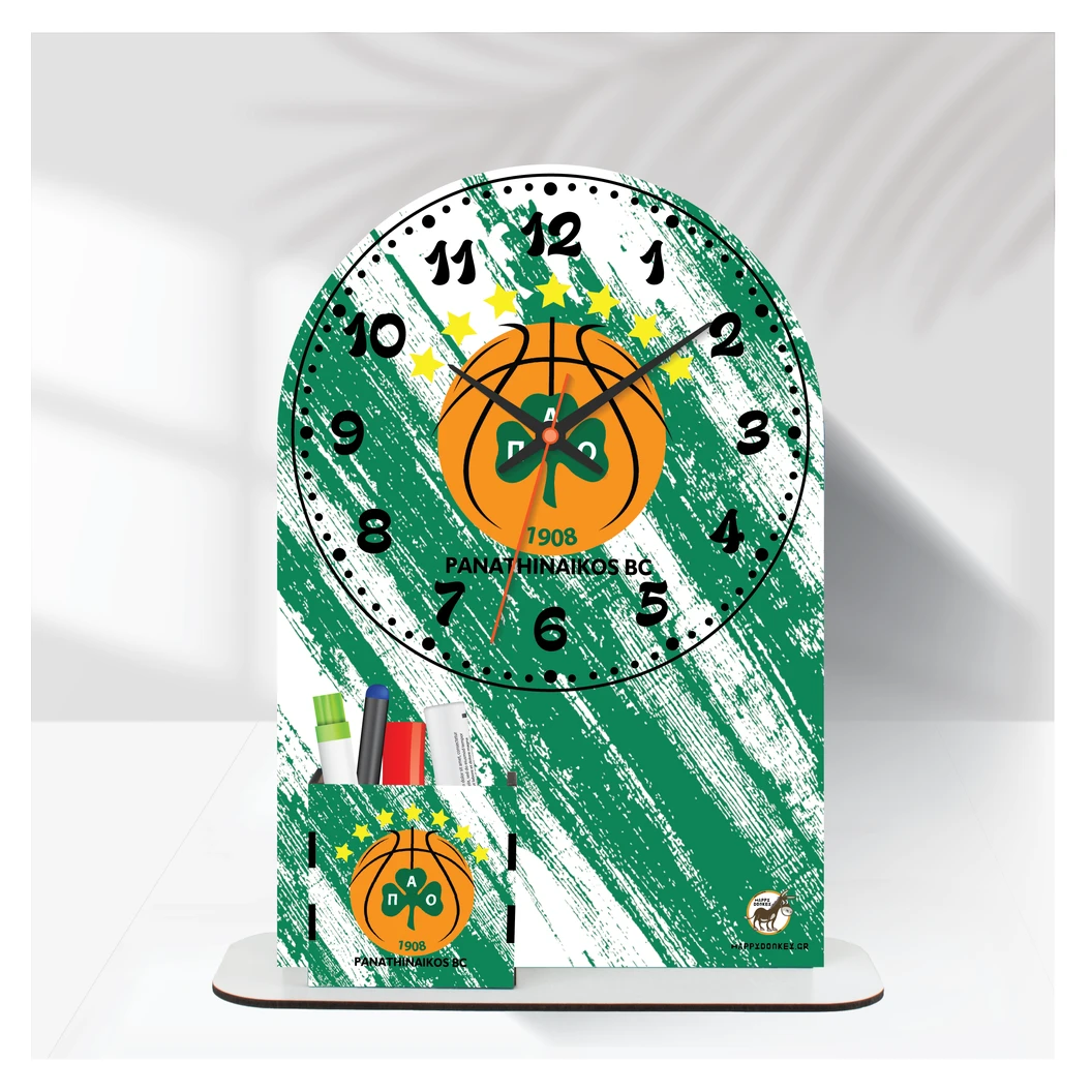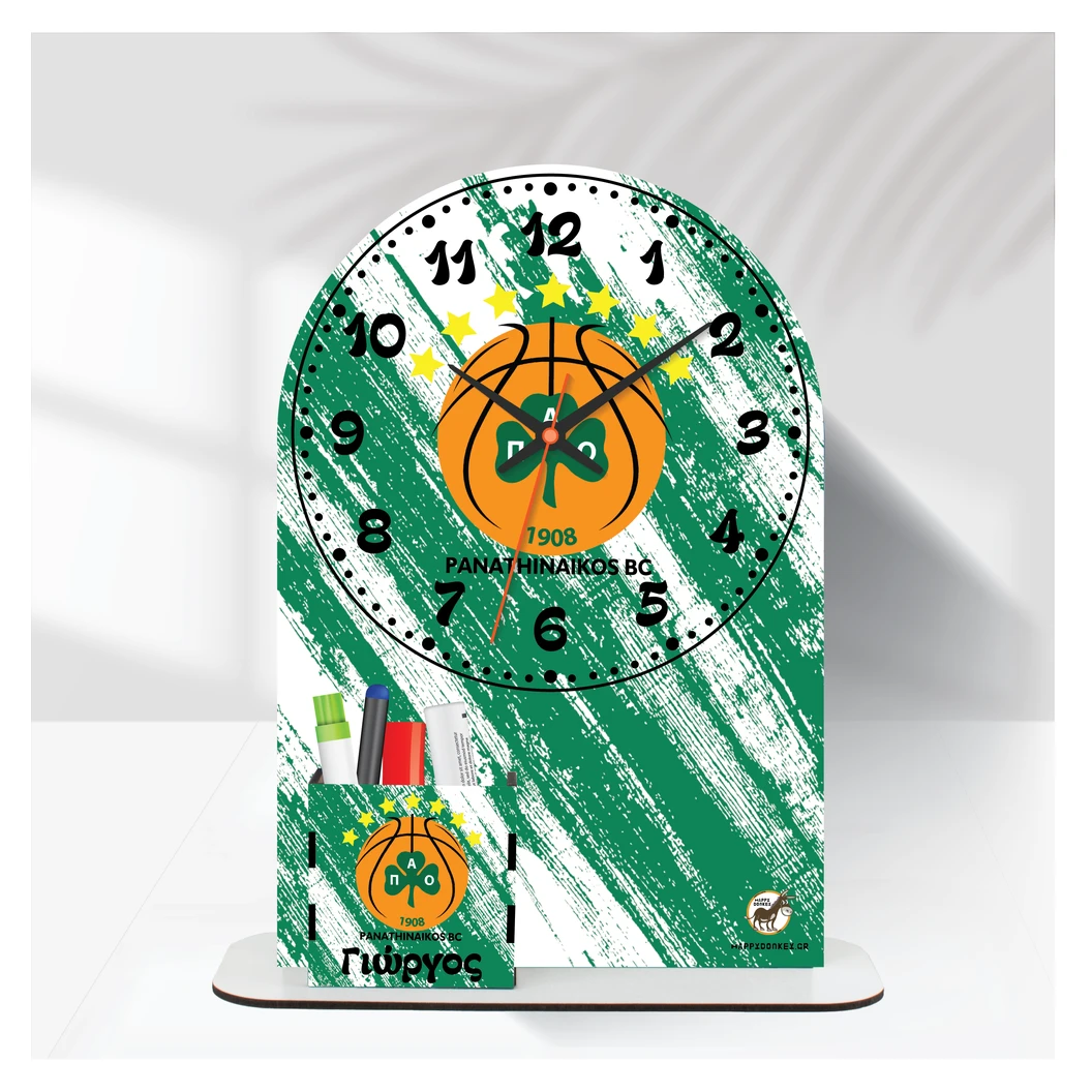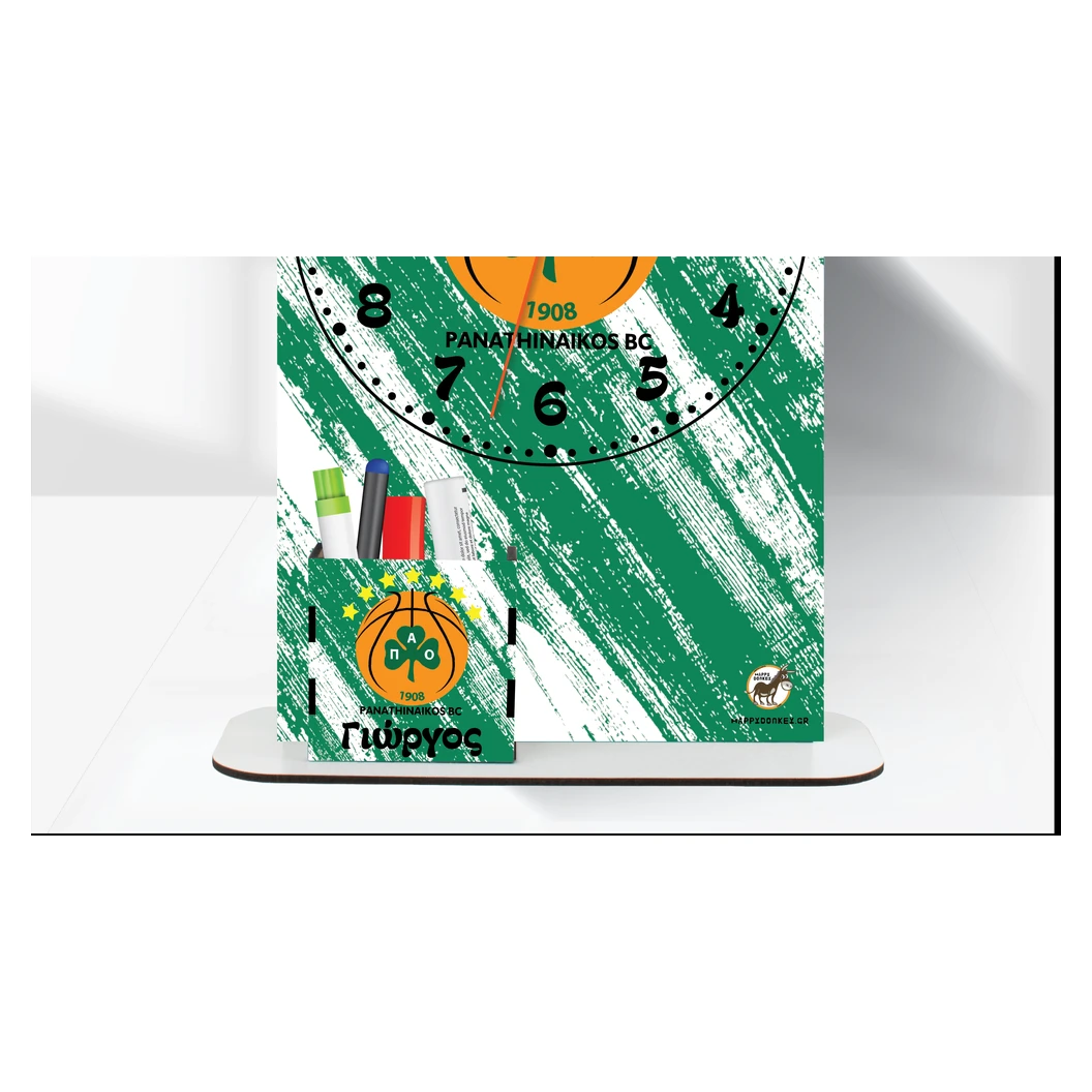 Happy Donkey Ρολόι Επιτραπέζιο ‘Παναθηναϊκός Basket με Όνομα & Μολυβοθήκη’