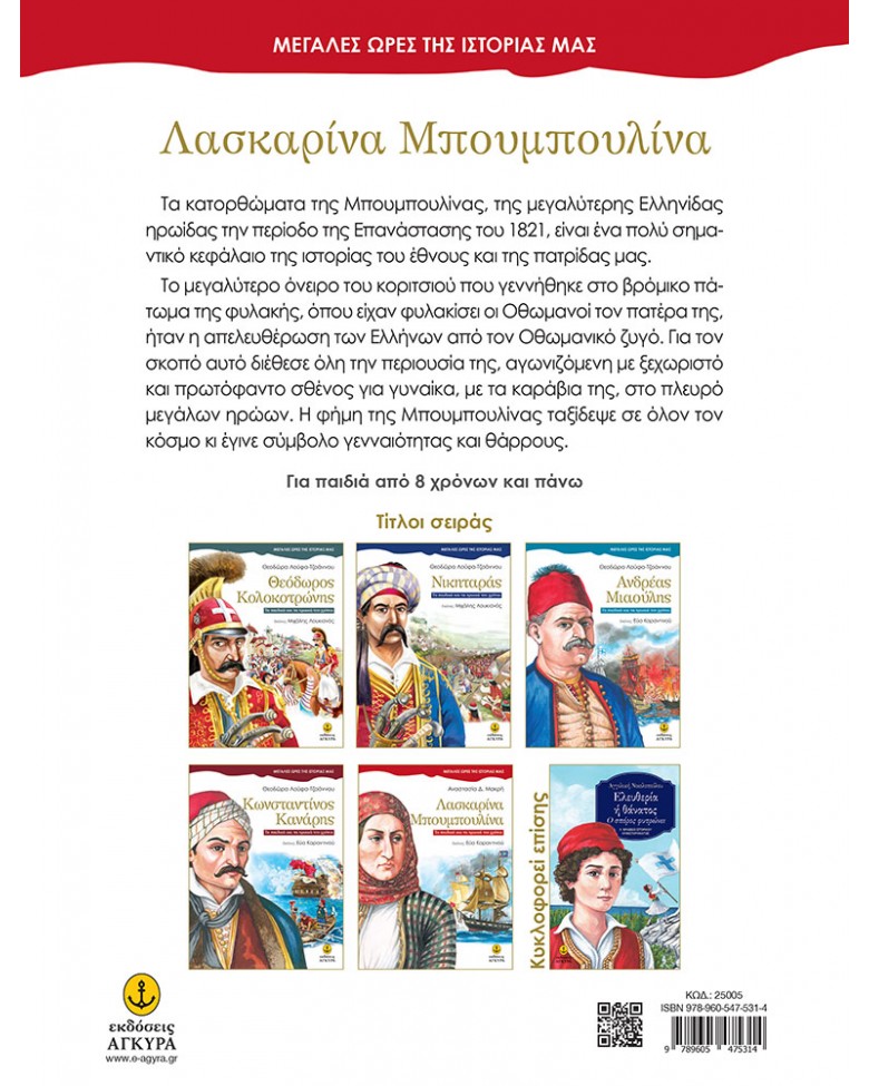 Το μεγαλύτερο όνειρο του κοριτσιού που γεννήθηκε στο βρόμικο πάτωμα της φυλακής, όπου είχαν φυλακίσει οι Οθωμανοί τον πατέρα της, ήταν η απελευθέρωση των Ελλήνων από τον Οθωμανικό ζυγό. Για τον σκοπό αυτό διέθεσε όλη την περιουσία της, αγωνιζόμενη με ξεχωριστό και πρωτόφαντο σθένος για γυναίκα, με τα καράβια της, στο πλευρό μεγάλων ηρώων. Η φήμη της Μπουμπουλίνας ταξίδεψε σε όλον τον κόσμο κι έγινε σύμβολο γενναιότητας και θάρρους.
