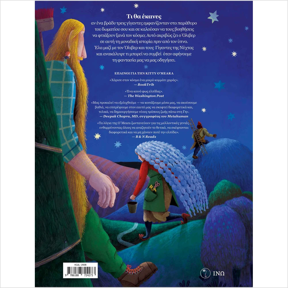 Τι θα έκανες αν ένα βράδυ τρεις γίγαντες εμφανίζονταν στο παράθυρο του δωματίου σου και σε καλούσαν να τους βοηθήσεις να φτιάξουν ξανά τον κόσμο; Αυτό ακριβώς ζει ο Όλιβερ σε αυτή τη μοναδική ιστορία πριν από τον ύπνο.
