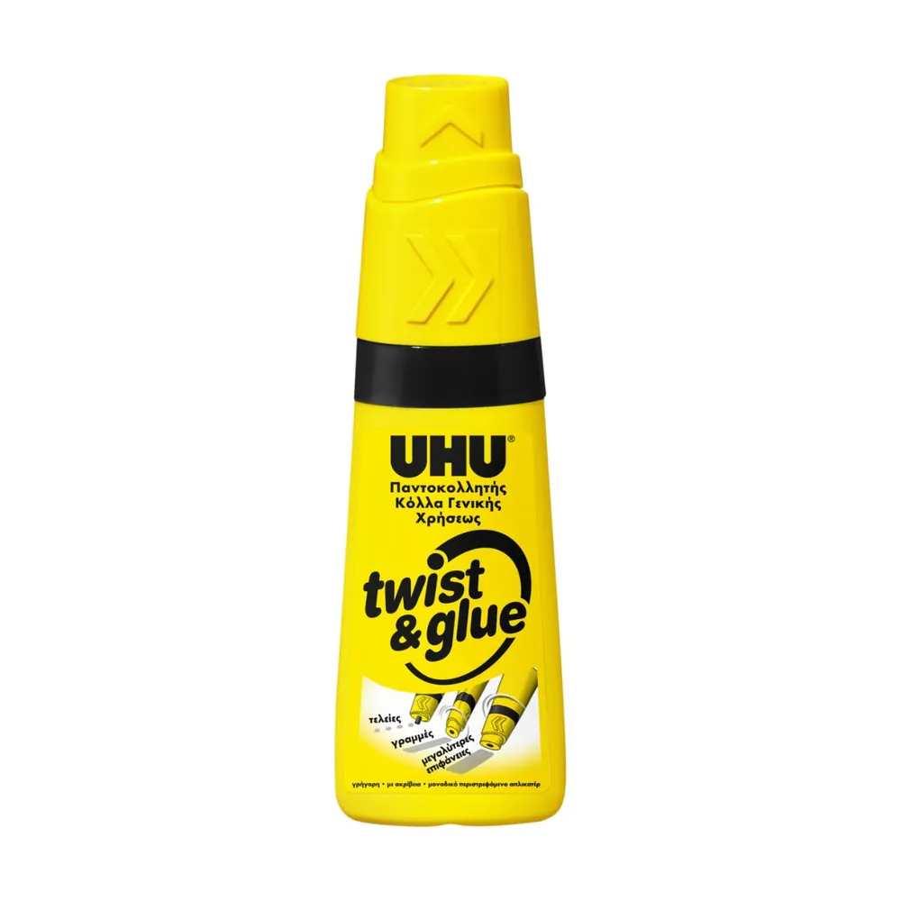Μια κόλλα γενικής χρήσεως απ’ την Uhu, παντοκολλητής, σε μια μαλακή και εύχρηστη πλαστική φιάλη με το μοναδικό μηχανισμό περιστροφής 3 θέσεων για την κόλληση σημείων, γραμμών και επιφανειών. Ιδανικό για ένα ευρύ φάσμα εφαρμογών στο σπίτι, στο σχολείο, στο γραφείο, στη χειροτεχνία στο μοντελισμό κλπ. Η κρυστάλλινη φόρμουλα στεγνώνει γρήγορα και ξεπλένεται στους 60 ° C. Μπορεί να ξαναγεμίσει. Επιτρέπει την εύκολη και ακριβή κόλληση.